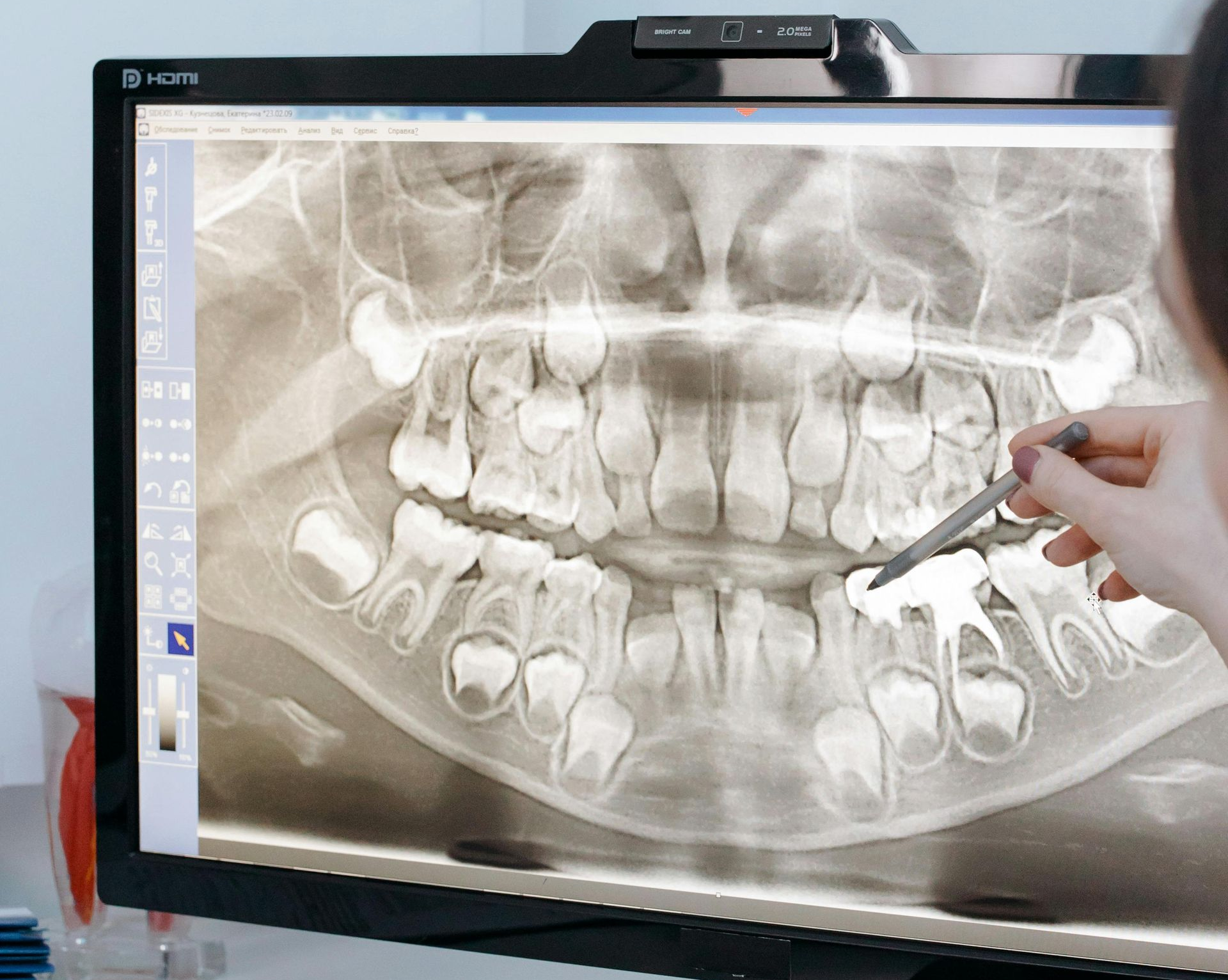 Digital X-ray technology allows us to capture clear, detailed images while exposing patients to significantly less radiation (up to 80%) than traditional film X-rays. Because digital sensors are much more sensitive than film, they require far less radiation to produce high-quality images.